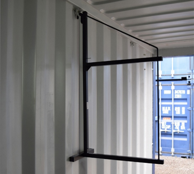 Závěsné nebo otevřené policové konzoly představují praktické řešení, jak vytvořit regály v lodním kontejneru bez vrtání nebo svařování. Konzoly se jednoduše zavěsí do horních závěsných háčků kontejneru a umožní vám rychle vytvořit pevný a přehledný skladovací systém.